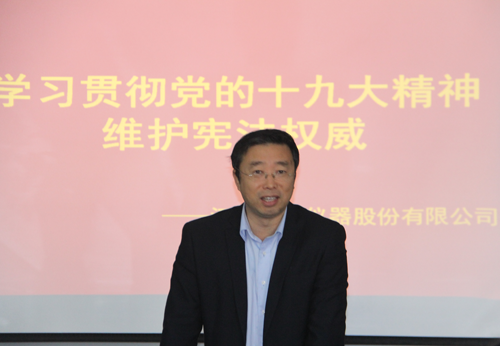 會議由天瑞儀器副總經理肖廷良主持。總經理應剛先生作開場致辭,他暢談了學習貫徹十九大精神、維護憲法權威對我們開展工作的重要意義。