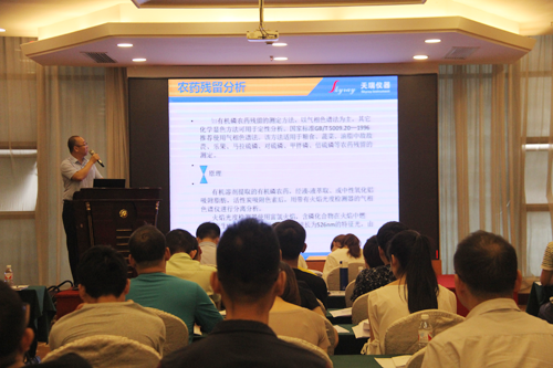 理論培訓會上,天瑞儀器劉召貴博士現場致歡迎辭,對培訓班學員的到來表示衷心的歡迎。天瑞儀器副總經理黎橋從研發基礎與能力、品質管理與服務等方面為學員們系統作了公司介紹。天瑞儀器XRF事業部負責人與糧食行業技術工程師分別作了關于“糧食重金屬快速檢測儀的使用與維護”與“天瑞儀器食品安全檢測整體解決方案”的報告,進一步加深了各位學員對糧食安全檢測的系統了解,提升了大家對糧食重金屬快速檢測儀的宏觀認知。
