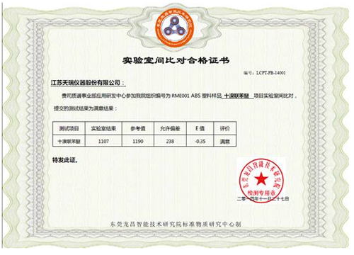 附錄2:實驗室間比對合格證書(多溴聯苯醚)