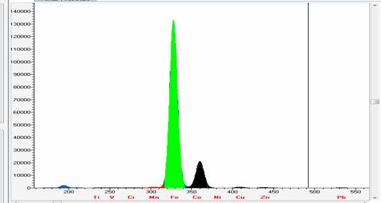以下使用EDX 3600B型對鐵礦國標樣GSBD31006a實際測試的所得的譜圖,工作曲線等相關數據: