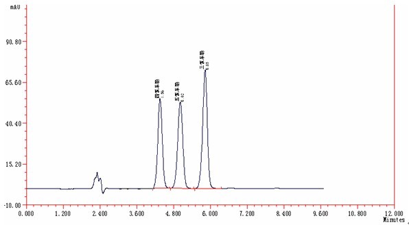 2、標準溶液的配置:用甲醇分別將3種標準品配置成適量濃度的 2,4,6--三氯苯酚,2,3,5,6--四氯苯酚、五氯苯酚的儲備液,使用時各吸取適量儲備液于同一容量瓶中,用甲醇稀釋至刻度,搖勻,待用。