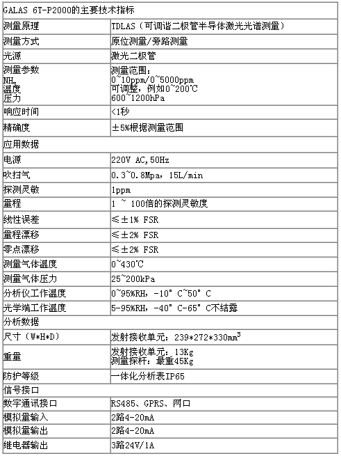 激光在線氣體分析儀(氨氣)GALAS 6T-P2000選取以基于可調諧二極管(TDLAS)激光吸收光譜技術的激光在線氣體分析儀采用原位探桿式激光分析法,測量氨逃逸量。