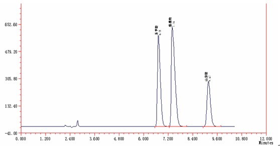 用超純水分別將3種標準品配置成適宜濃度的苯甲酸,糖精鈉、山梨酸的儲備液,備用。使用時分別取各儲備液適量,用甲醇稀釋成混合標液,待測。