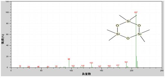 本實驗采用氣相色譜質譜聯用法(GC-MS),在SIM掃描模式下對硅氧烷類化合物進行測試,方法穩定可靠,線性范圍好,靈敏度高,受雜質峰干擾小,完全符合REACH限量的要求。