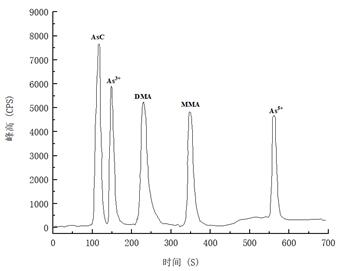 圖4. 5.0μg/L五種砷形態的混合標準溶液色譜圖