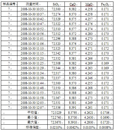 標樣:建材院玻璃所自制標樣(僅有常規(guī)測量的四種元素)