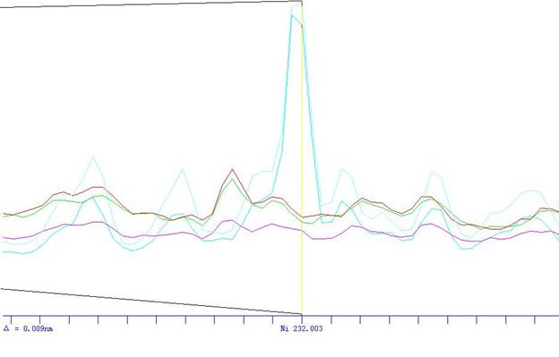 根據ICP軟件譜線庫提供所有元素不同譜線,首先選擇被測元素靈敏度高的譜線,其次考慮不受樣品基體及被測元素相互之間干擾小的譜線的原則,選擇分析線如下。