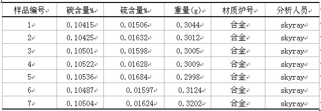 試驗數據表明:高頻紅外碳硫儀CS-168型測試有色金屬及合金中的碳硫含量,結果準確,且重復性好,簡單,快速。可以廣泛的應用在各種各樣的合金樣品中。